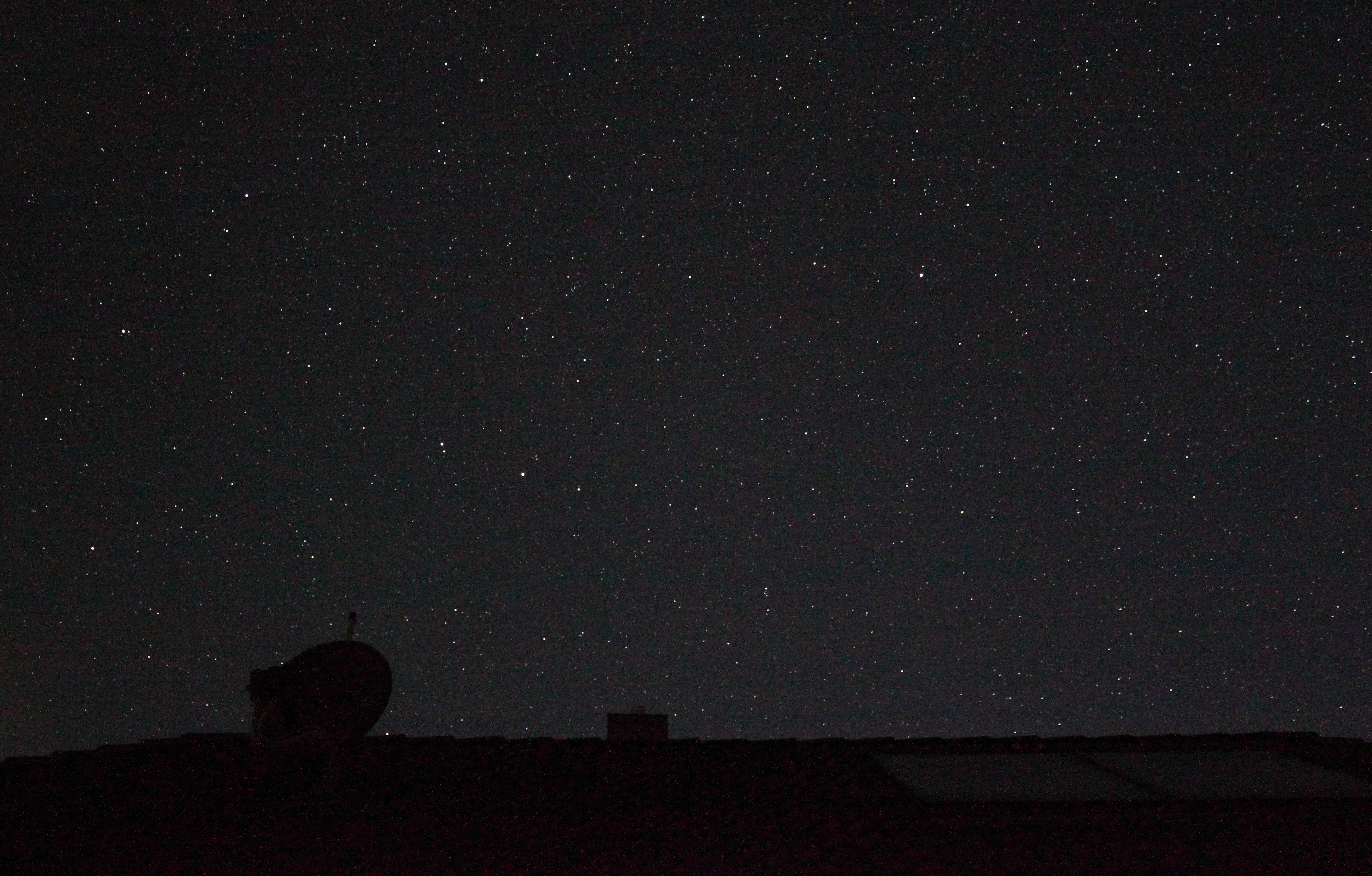 Während der letzten Nacht: Test der Kamerafernbedienung und Anfertigung von ersten Langzeitbelichtungen mit der neuen Kamera. Motiv: Der sternenklare Himmel in der Nacht vom 2009-07-25 auf dem 52. Breiten- und 10. Längengrad, aufgenommen mit der EOS 500D und dem 18–55-mm-EF-S-Objektiv.
